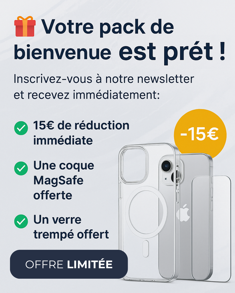 🔒 Le Pack Protection Sérénité offert (coque MagSafe + verre trempé)