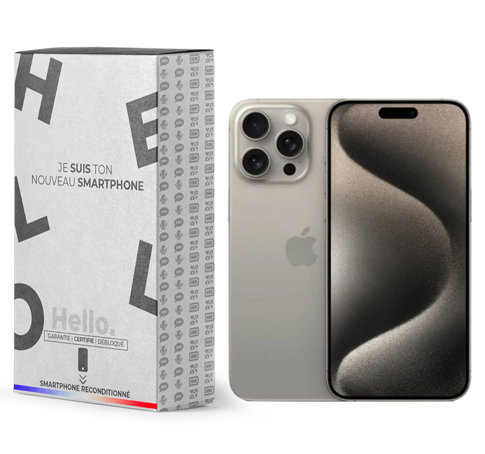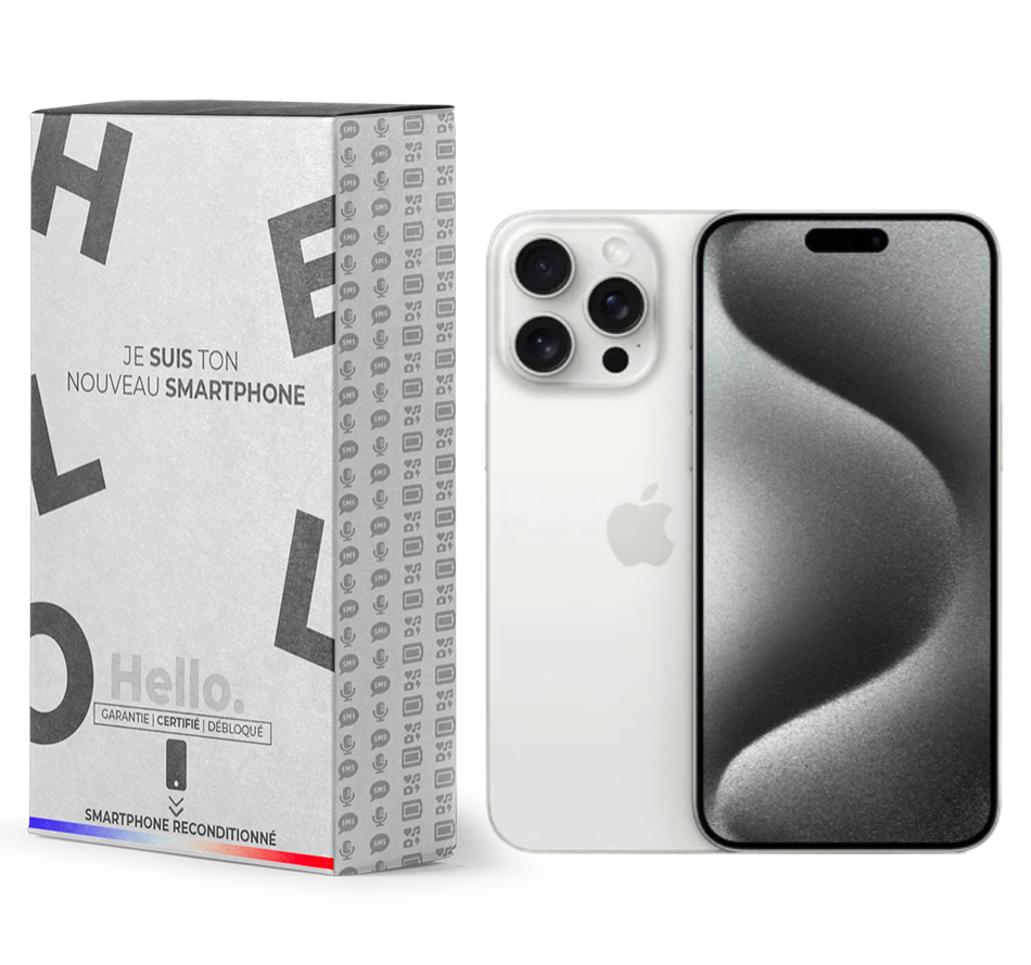 Nos iPhone 15 Pro Max reconditionnés bénéficient d’une garantie minimale de 12 mois, vous assurant tranquillité et fiabilité. De plus, notre service après-vente réactif est à votre disposition pour toute question ou assistance. Commandez dès aujourd’hui votre iPhone 15 Pro Max débloqué et reconditionné chez Hello.store et profitez d’un smartphone d’exception, accessible à tous.
