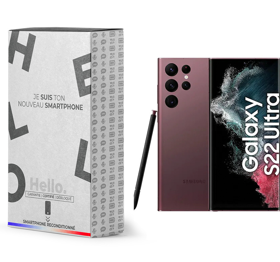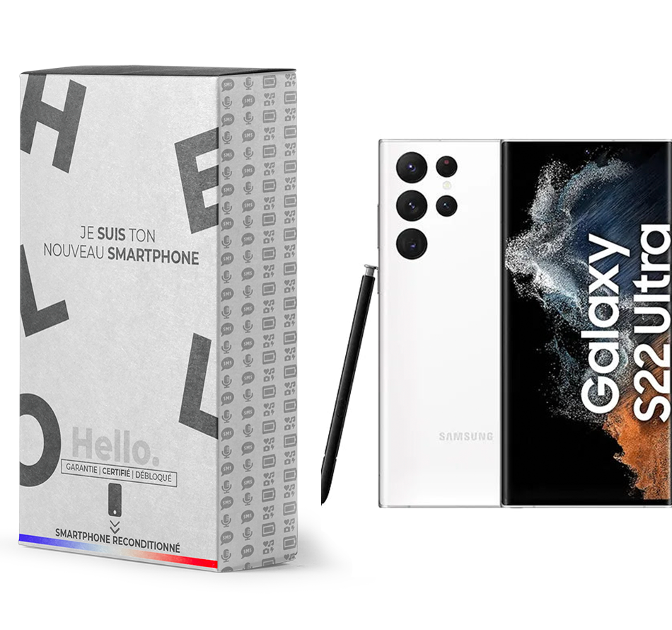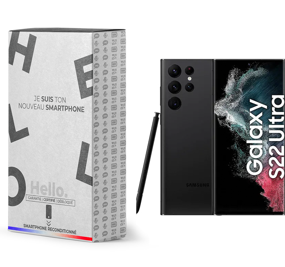 Le Samsung Galaxy S22 Ultra Reconditionné chez Hello.store est un smartphone de pointe offrant des performances ultimes et des fonctionnalités avancées pour les utilisateurs exigeants. Entièrement restauré, testé et nettoyé, il vous assure une expérience utilisateur inégalée tout en contribuant à la protection de l'environnement. En choisissant un Samsung Galaxy S22 Ultra 5G Reconditionné chez Hello.store, vous faites non seulement un choix économique, mais également écologique. Les smartphones reconditionnés contribuent à la réduction des déchets électroniques et permettent d'économiser les ressources naturelles en limitant la production de nouveaux appareils. Faites un geste pour la planète tout en profitant des dernières technologies à un prix avantageux. Hello.store est fier de proposer des produits reconditionnés de haute qualité. C'est pourquoi tous nos Samsung Galaxy S22 Ultra 5G Reconditionnés sont accompagnés d'une garantie minimum de 12 mois et d'un service après-vente réactif et compétent pour répondre à toutes vos questions et préoccupations. Achetez en toute confiance et profitez pleinement de votre nouvel Samsung Galaxy S22 Ultra 5G ReconditionnéSamsung Galaxy S22 Ultra Reconditionné : Performances ultimes et fonctionnalités de pointe
